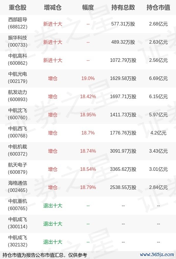 本站消息,4月22日富国基金旗下王乐乐 牛志冬管理的富国中证军工龙头交易型开放式指数基金公布一季报,近1年净值增长率14.15%。与上一季度相比,该基金前十大重仓股新增西部超导,振华科技,中航高科;并对中航光电增仓260.19万股君盈配资,为该基金第一大重仓股;中航重机,中航成飞,中航成飞等退出前十大重仓股;详细数据如下: