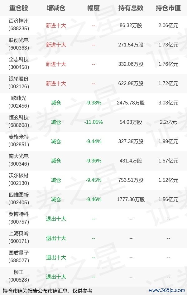 本站消息,4月22日南方基金旗下崔蕾管理的南方中证1000交易型开放式指数基金公布一季报,近1年净值增长率14.4%。与上一季度相比金惠配资,该基金前十大重仓股新增百济神州,联创光电,全志科技,银轮股份;其中欧菲光持仓占比0.59%,为该基金第一大重仓股;罗博特科,上海贝岭,国盾量子,柳工等退出前十大重仓股;详细数据如下: